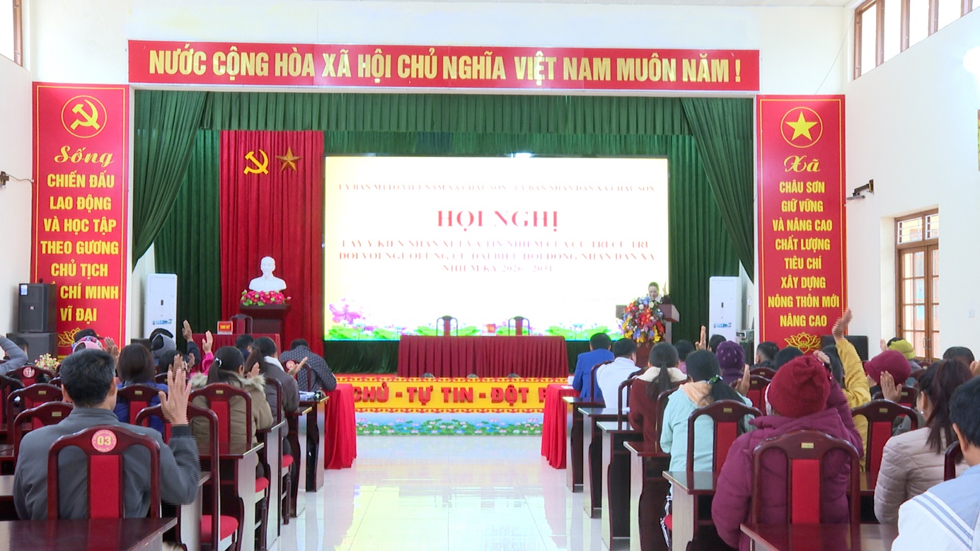 Ngày 5/2/2026, Ủy ban MTTQ Việt Nam xã Châu Sơn tổ chức Hội nghị lấy ý kiến nhận xét và tín nhiệm của cử tri nơi cư trú đối với những người ứng cử đại biểu HĐND xã, nhiệm kỳ 2026-2031.