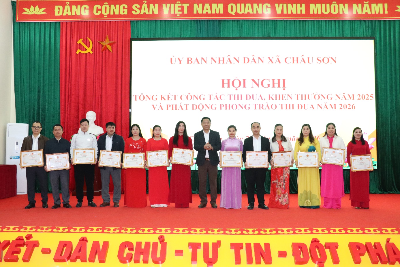 Ngày 29/01/2026, UBND xã Châu Sơn tổ chức hội nghị tổng kết phong trào thi đua, công tác khen thưởng năm 2025 và Phát động phong trào thi đua năm 2026. Dự và chỉ đạo hội nghị có đồng chí Nguyễn Hữu Trực, Bí thư Đảng uỷ, Chủ tịch HĐND xã; Đ/c Vi Thị Thu, Phó Bí thư Thường trực Đảng uỷ; đồng chí Nguyễn Công Hưng, Phó Bí thư Đảng uỷ - Chủ tịch UBND xã và các đồng chí lãnh đạo Đảng uỷ - HĐND – UBND – UBMTTQVN xã, cùng toàn thể cán bộ công chức, viên chức, các đồng chí Bí thư chi bộ các thôn.