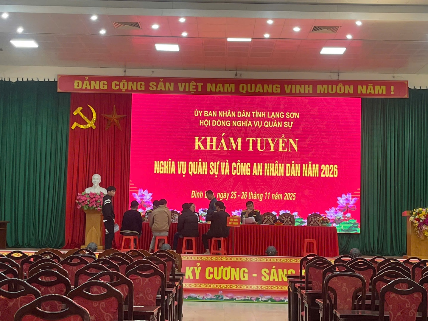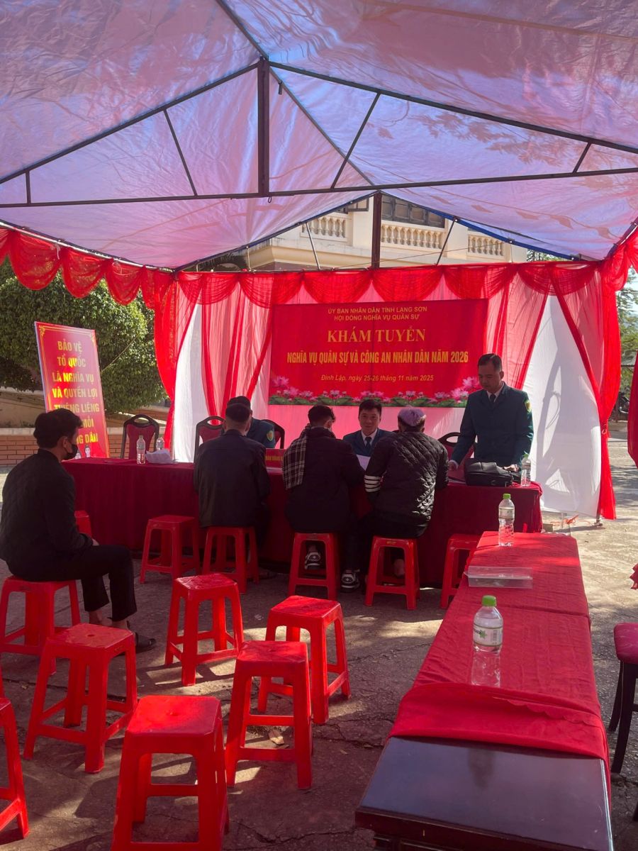 Trong hai ngày 25–26/11/2025, dưới sự lãnh đạo, chỉ đạo sát sao của UBND tỉnh Lạng Sơn, Bộ CHQS tỉnh và Công an tỉnh, Hội đồng Nghĩa vụ quân sự các xã trên địa bàn huyện Đình Lập (trước đây) đã tổ chức đợt khám tuyển công dân thực hiện nghĩa vụ quân sự và nghĩa vụ tham gia Công an nhân dân năm 2026. Đây là nhiệm vụ chính trị quan trọng, góp phần xây dựng lực lượng vũ trang địa phương vững mạnh – chính quy – tinh nhuệ, đáp ứng yêu cầu bảo vệ Tổ quốc trong tình hình mới.
