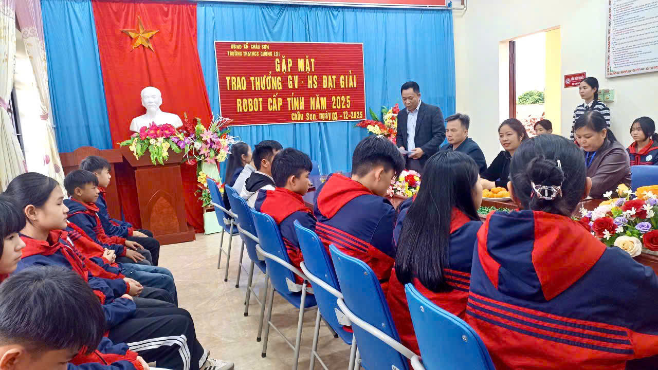 Sáng ngày 03/12/2025, lãnh đạo Đảng uỷ, UBND xã Châu Sơn đã đến thăm, động viên và chúc mừng thành tích xuất sắc của thầy và trò Trường Tiểu học & THCS Cường Lợi sau khi nhà trường tham gia Ngày hội Đổi mới sáng tạo tỉnh Lạng Sơn và Cuộc thi Lập trình điều khiển Robot cấp tỉnh năm học 2025–2026. Đoàn có đồng chí Nguyễn Hữu Trực, Bí thư Đảng ủy, chủ tịch Hội đồng Nhân dân xã; Nguyễn Công Hưng, Phó bí thư Đảng uỷ, Chủ tịch UBND xã chủ trì.