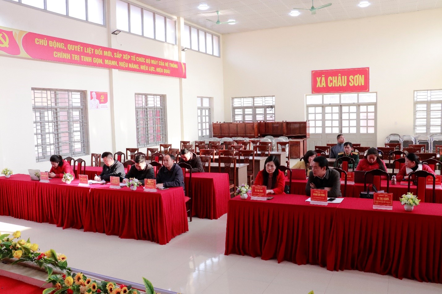Các đồng chí lãnh đạo và đại biểu dự tại điểm cầu xã Châu Sơn