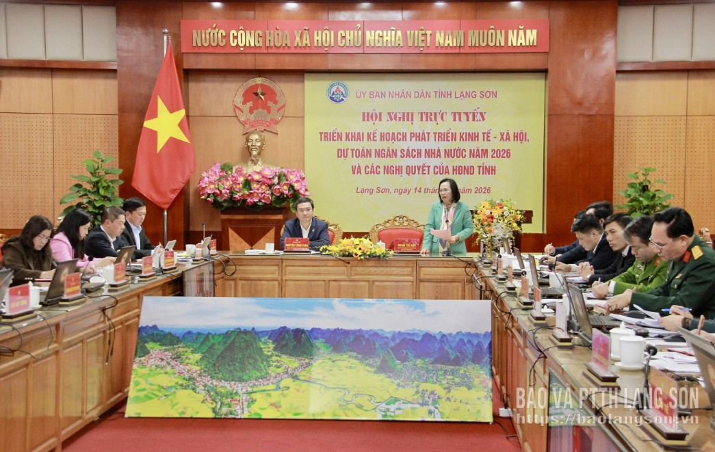 Chiều 14/1, UBND tỉnh tổ chức Hội nghị trực tuyến triển khai Kế hoạch phát triển kinh tế - xã hội, dự toán ngân sách nhà nước (NSNN) năm 2026 và các nghị quyết của HĐND tỉnh. Đồng chí Đoàn Thị Hậu, Phó Bí thư Thường trực Tỉnh ủy, Chủ tịch HĐND tỉnh dự và chỉ đạo hội nghị. Đồng chí Nguyễn Cảnh Toàn, Phó Bí thư Tỉnh ủy, Chủ tịch UBND tỉnh chủ trì hội nghị. Hội nghị được tổ chức theo hình thức trực tiếp kết hợp trực tuyến từ điểm cầu UBND tỉnh đến 65 xã, phường của tỉnh.