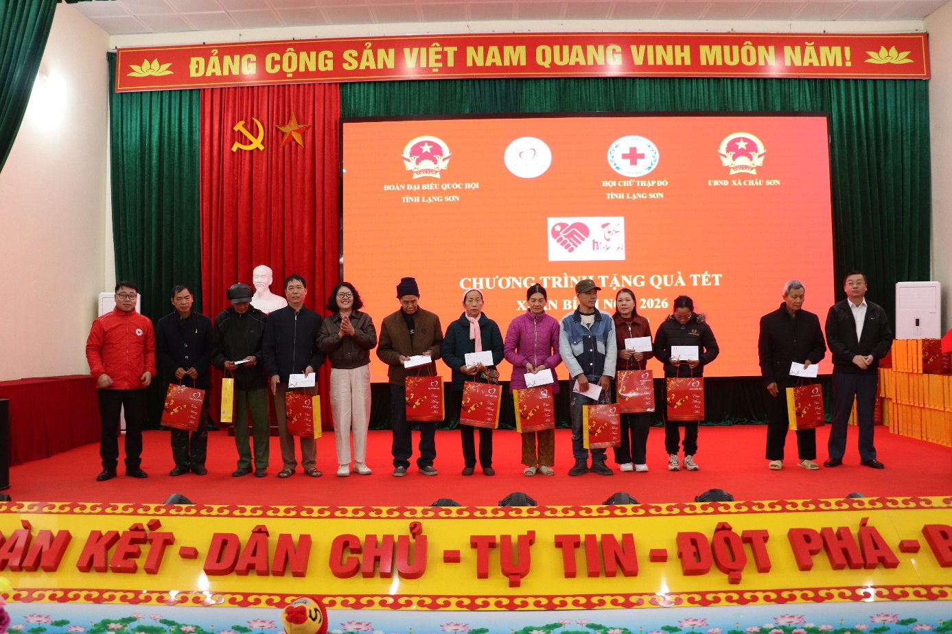 Ngày 01/02/2026, Hội Chữ thập đỏ tỉnh Lạng Sơn, Quý thiện tâm tập đoàn Vingroup phối hợp với UBND xã Châu Sơn tặng quà tết cho 300 hộ nghèo, cận nghèo, gia đình chính sách có hoàn cảnh khó khăn tại xã Châu Sơn, tỉnh Lạng Sơn. Dự buổi Lễ về phía xã có đồng chí Vi Thị Thu, Phó Bí thư Đảng uỷ; Đ/c Nguyễn Công Hưng, phó Bí thư Đảng uỷ, Chủ tịch UBND xã; đồng chí Phạm Thị Lan, Phó Chủ tịch UBND xã; đồng chí Nguyễn Thành Trung, Phó Chủ tịch UBND xã.