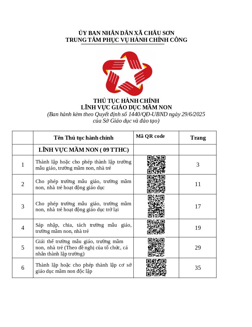 | Tiêu đề văn bản | THỦ TỤC HÀNH CHÍNH LĨNH VỰC GIÁO DỤC MẦM NON | ||