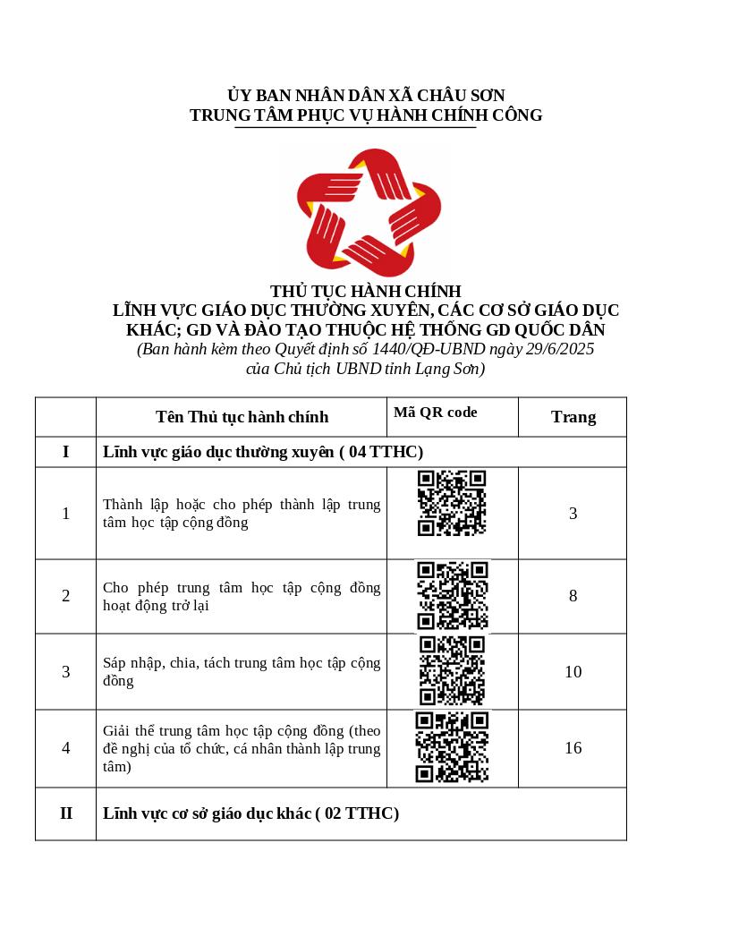 | Tiêu đề văn bản | THỦ TỤC HÀNH CHÍNH LĨNH VỰC GIÁO DỤC THƯỜNG XUYÊN, CÁC CƠ SỞ GIÁO DỤC KHÁC; GD VÀ ĐÀO TẠO THUỘC HỆ THỐNG GD QUỐC DÂN | ||