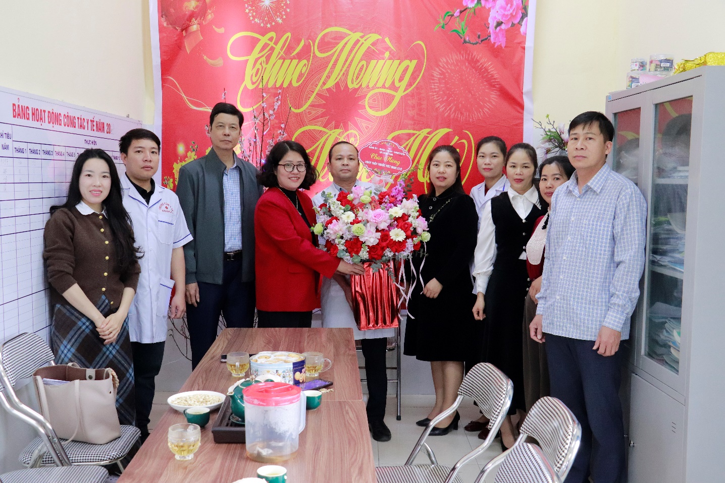 Đoàn công tác của Đảng ủy - HĐND - UBND – Uỷ ban MTTQ Việt Nam xã Châu Sơn tặng hoa chúc mừng Trạm y tế xã Châu Sơn nhân ngày Thầy thuốc Việt Nam 27/2