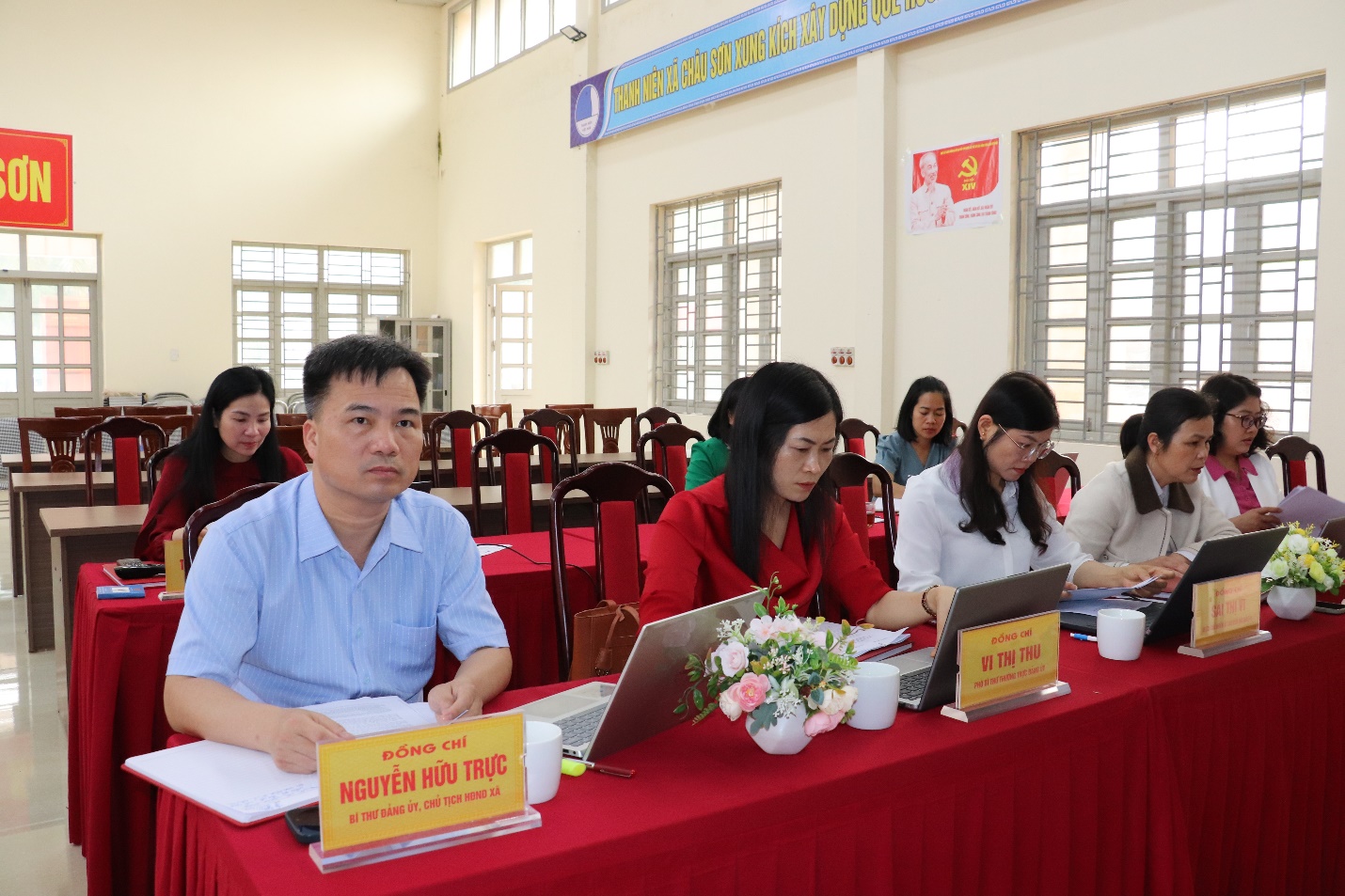 Các đại biểu dự hội nghị tại điểm cầu Đảng uỷ xã Châu Sơn