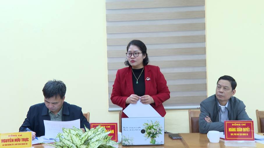 Dự và chỉ đạo Hội nghị có đồng chí Nguyễn Hữu Trực, Bí thư Đảng uỷ, Chủ tịch HĐND xã; đồng chí Vi Thị Thu, Phó Bí thư thường trực Đảng uỷ xã; đồng chí Hoàng Xuân Quyết, Phó Chủ tịch HĐND xã; đồng chí Phạm Thị Lan, Phó Chủ tịch UBND xã.