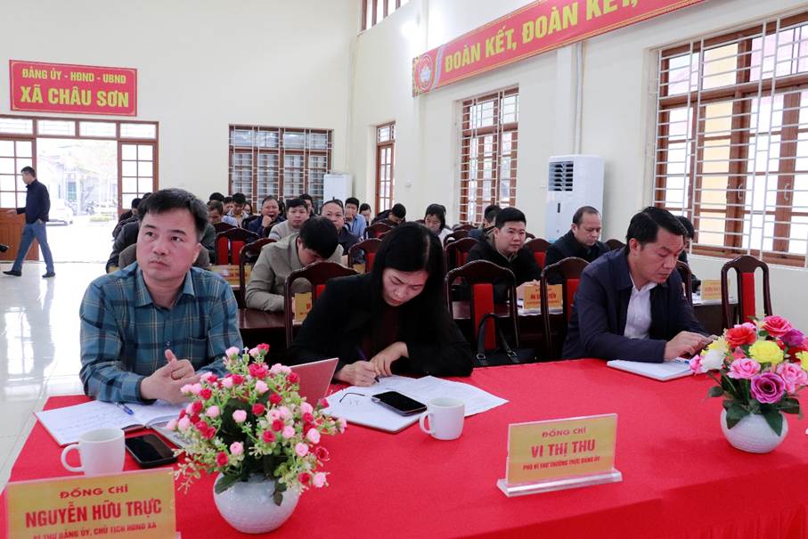 Dự hội nghị tại điểm cầu xã Châu Sơn, tỉnh Lạnh Sơn có đồng chí Nguyễn Hữu Trực, Bí thư Đảng ủy xã, Chủ tịch HĐND xã. Cùng dự có đồng chí Vi Thị Thu, Phó Bí thư Thường trực Đảng ủy; đồng chí Nguyễn Công Hưng, Phó Bí thư Đảng ủy, Chủ tịch Ủy ban nhân dân xã. Các đồng chí Ủy viên Ban Thường vụ Đảng ủy; Lãnh đạo Ủy ban nhân dân; Thường trực Ủy ban Mặt trận Tổ quốc Việt Nam xã. Cùng toàn thể cán bộ, đảng viên của các cơ quan, đơn vị.