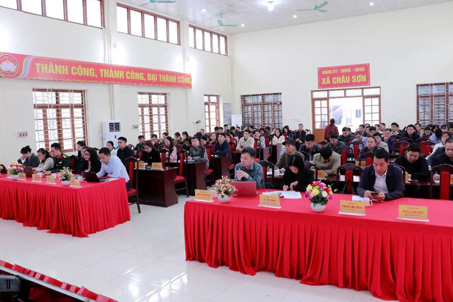Các đại biểu dự tại điểm cầu xã Châu Sơn.