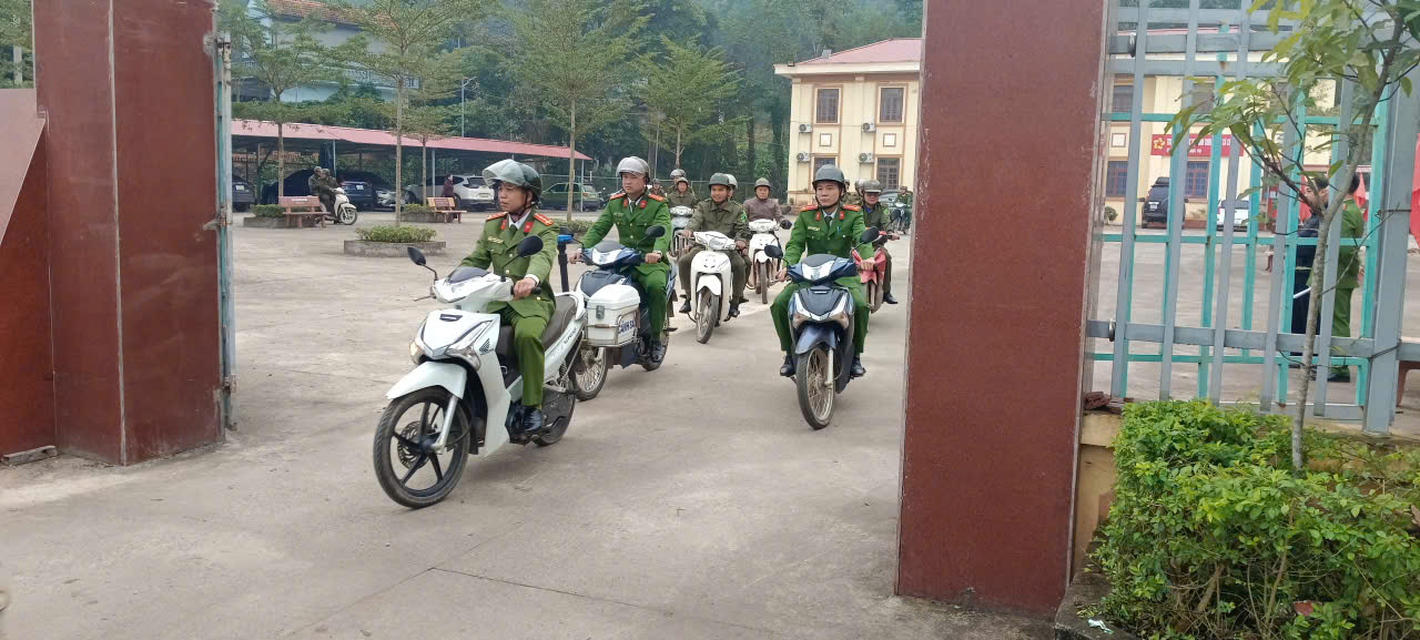 Ngay sau lễ phát động, các tổ công tác đã đồng loạt ra quân, tổ chức tuần tra lưu động trên các tuyến đường trọng điểm, khu dân cư, địa bàn phức tạp về an ninh trật tự. Hình ảnh đoàn xe tuần tra nghiêm trang, trật tự thể hiện rõ quyết tâm của lực lượng Công an xã Châu Sơn trong việc giữ vững bình yên cho Nhân dân.