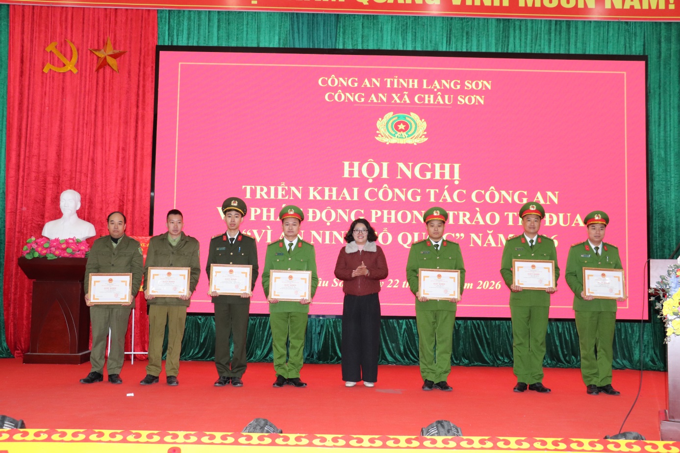 Nhân Dịp này đã có 06 đồng chí được nhận danh hiệu chiến sĩ thua đua cơ sở; 02 tập thể, 08 cá nhân được nhận giấy khen của Chủ tịch UBND xã; chi bộ công an xã tặng giấy khen cho 03 đồng chí vì có thành tích xuất sắc trong thực hiện nhiệm vụ năm 2025.