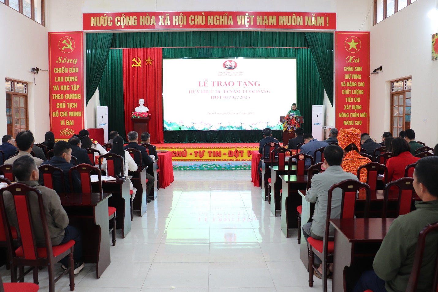 Nhân dịp kỷ niệm 96 năm Ngày thành lập Đảng Cộng sản Việt Nam (3/2/1930 - 3/2/2026), ngày 29/1/2026 Đảng ủy xã Châu Sơn tổ chức Lễ trao tặng Huy hiệu 30, 40 năm tuổi Đảng đợt 03/2/2026 cho các đảng viên trực thuộc Đảng ủy xã.