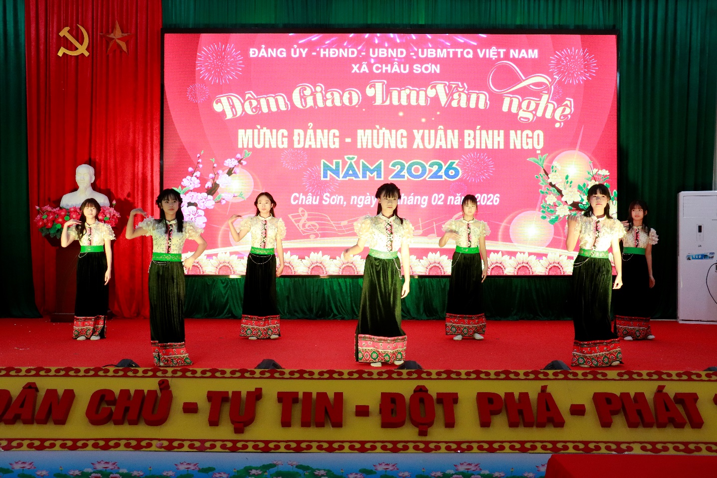 Chương trình văn nghệ có 19 tiết mục hát, múa, nhảy,… do các hạt nhân văn nghệ đến từ các thôn, các trường học, CLB trên địa bàn xã thể hiện. Các tiết mục được dàn dựng công phu đậm đà bản sắc dân tộc, mang âm hưởng mùa xuân mới, ca ngợi Đảng, Bác Hồ, ca ngợi quê hương đất nước. Đêm giao lưu văn nghệ mừng Đảng - mừng Xuân đã tạo không khí vui tươi, phấn khởi, mang đến cho người xem một không gian âm nhạc sôi động, ấm áp, ngập tràn khí thế của một mùa xuân mới. Qua đó, nhằm khích lệ, động viên nhân dân hăng hái thi đua lao động sản xuất, thực hiện thắng lợi các chỉ tiêu phát triển kinh tế, xã hội của địa phương trong năm 2026./.