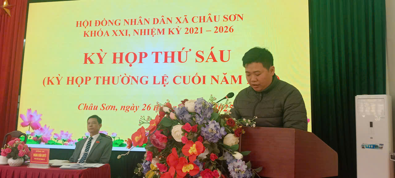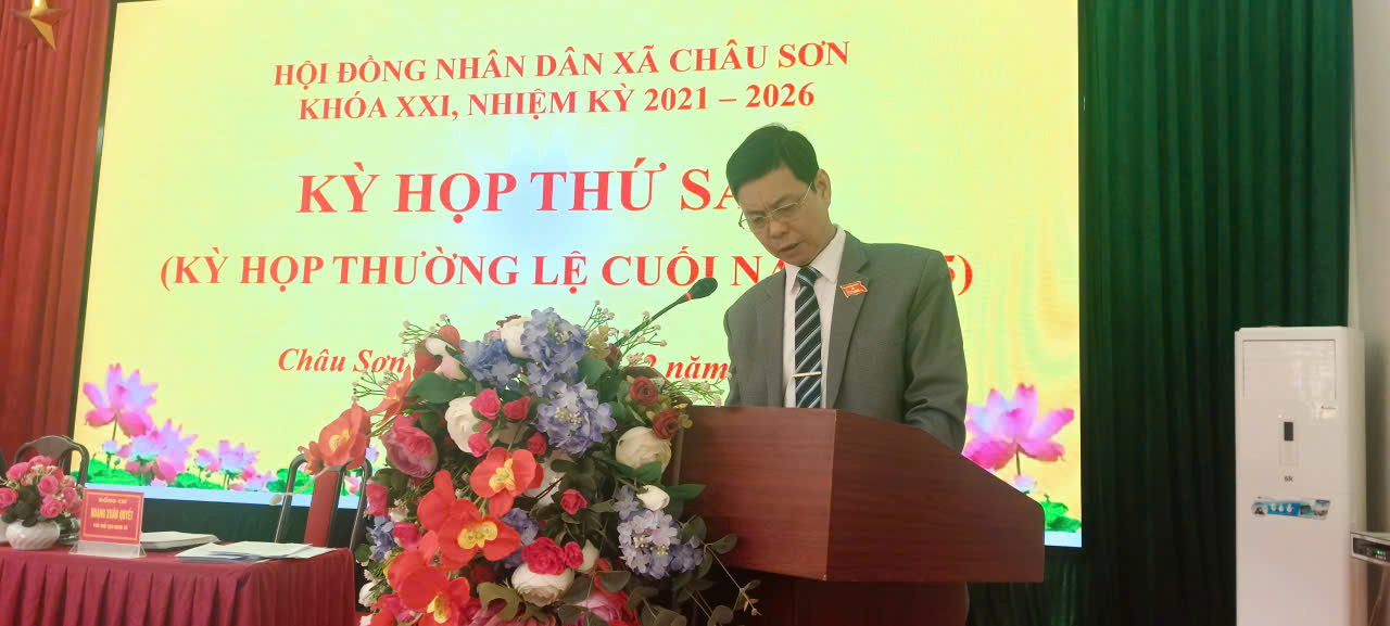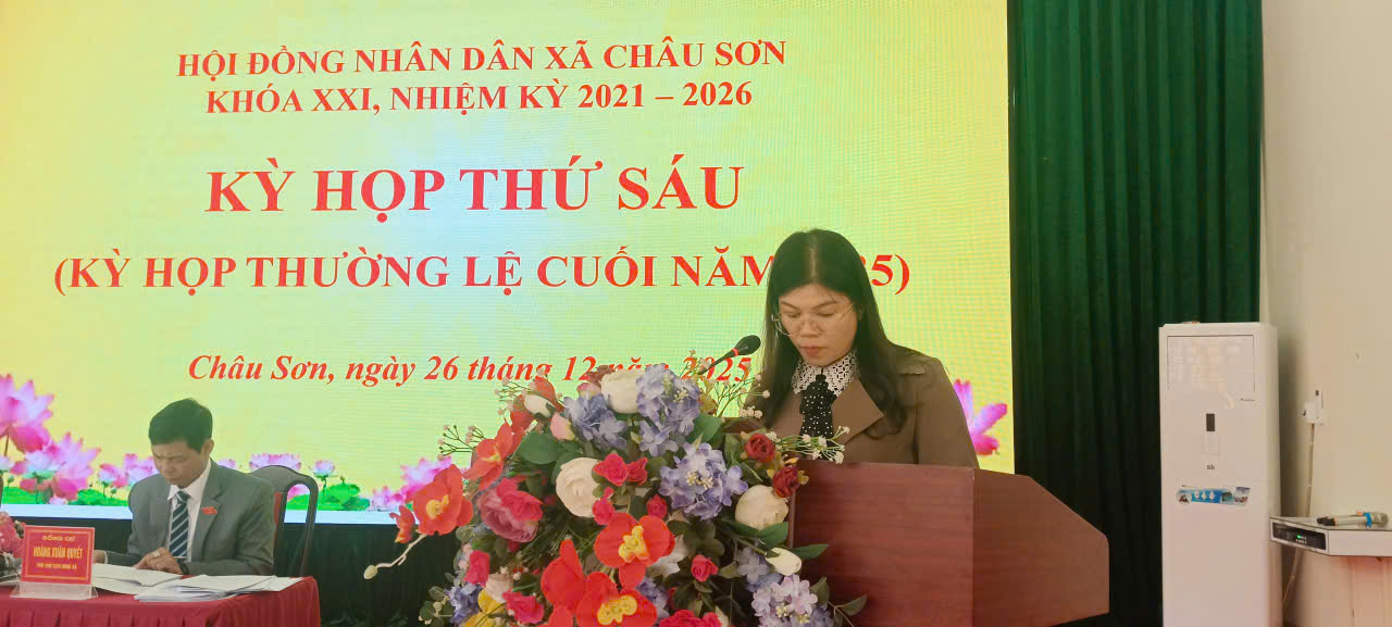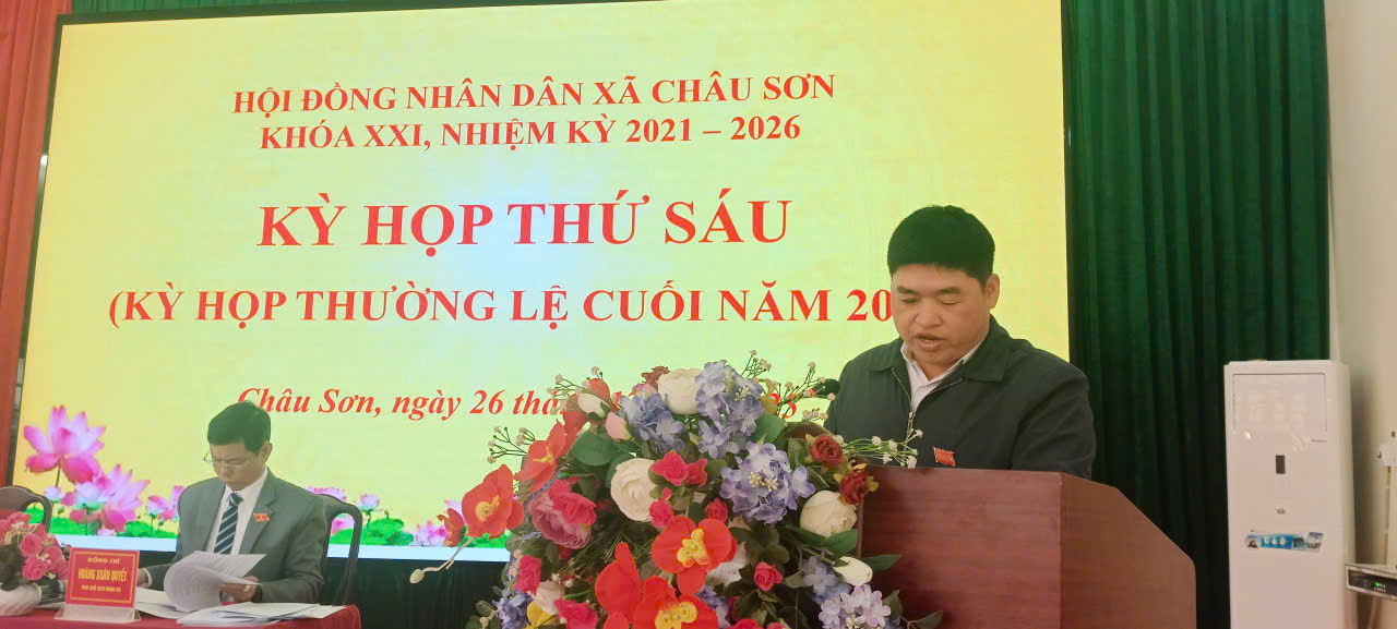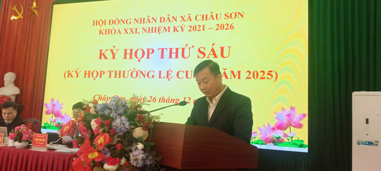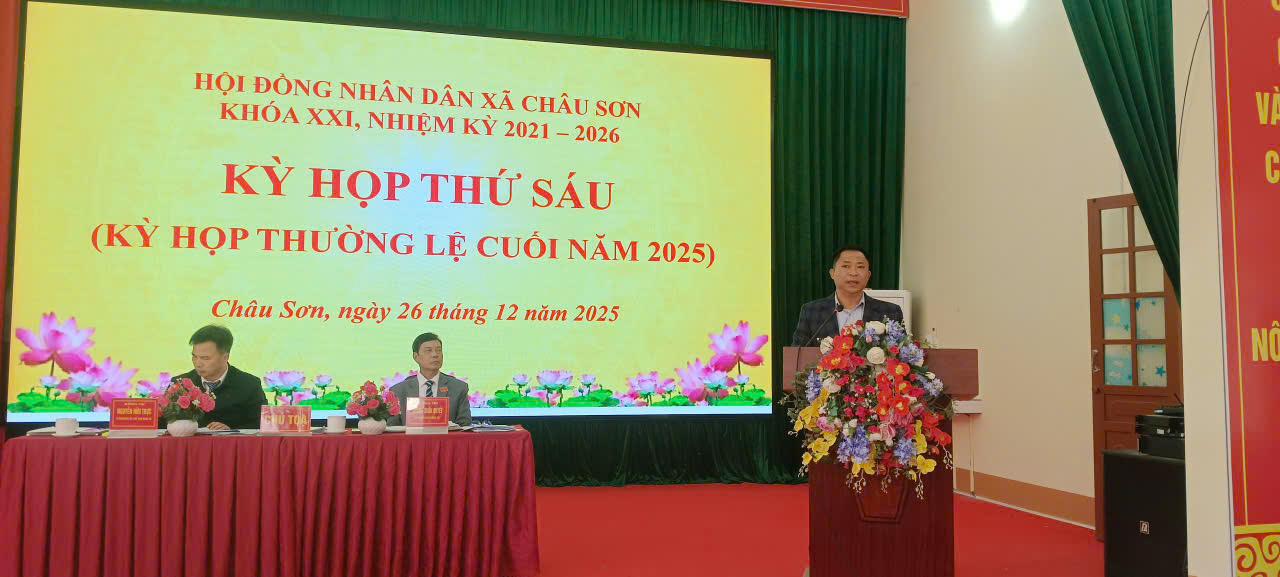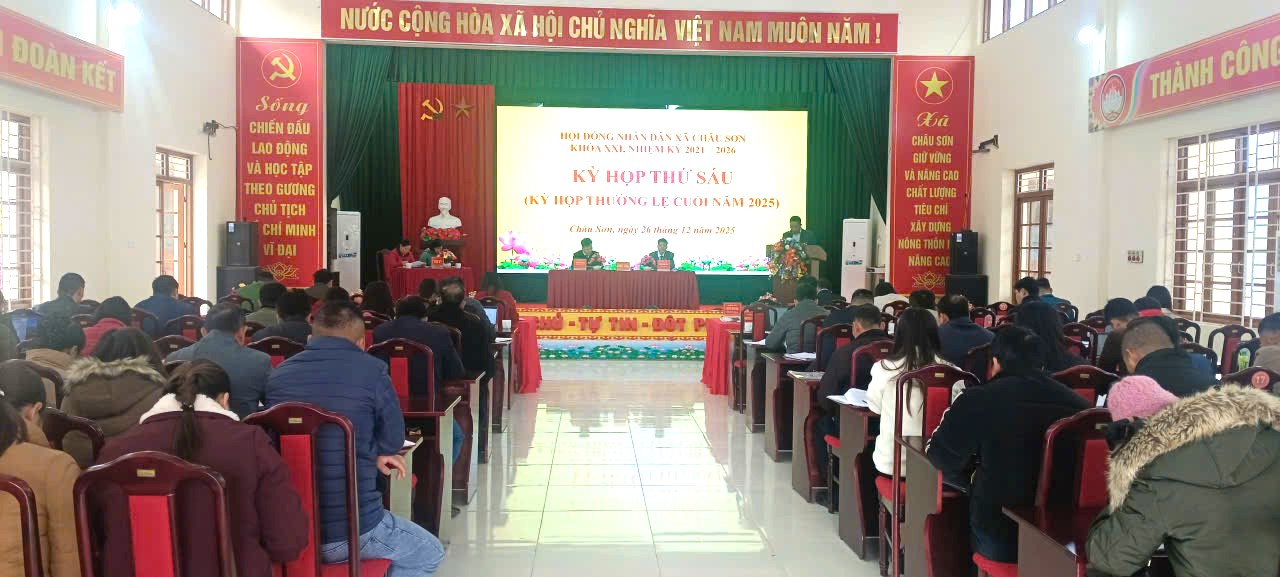 Ngày 26/12/2025, Hội đồng nhân dân xã Châu Sơn khóa XXI, nhiệm kỳ 2021–2026 đã long trọng tổ chức Kỳ họp thứ Sáu (kỳ họp thường lệ cuối năm 2025) nhằm đánh giá toàn diện tình hình thực hiện nhiệm vụ phát triển kinh tế – xã hội, quốc phòng – an ninh năm 2025 và quyết định các nhiệm vụ, giải pháp trọng tâm năm 2026.