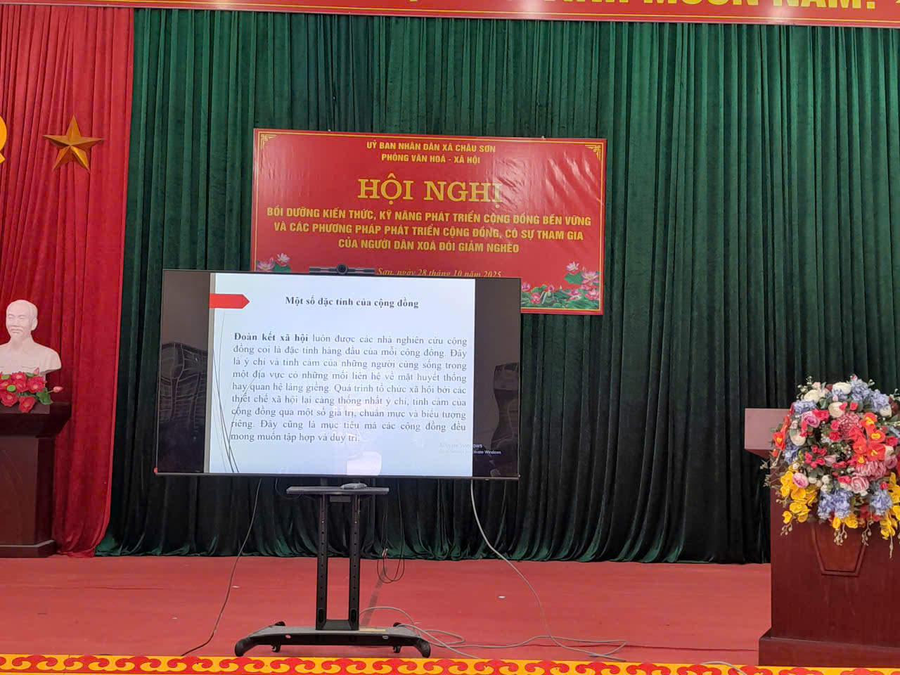 Ngày 28/10/2025, tại Hội trường Ủy ban nhân dân xã Châu Sơn, Phòng Văn hóa – Xã hội xã Châu Sơn tổ chức Hội nghị bồi dưỡng kiến thức, kỹ năng phát triển cộng đồng bền vững và các phương pháp phát triển cộng đồng có sự tham gia của người dân trong công tác xóa đói giảm nghèo.