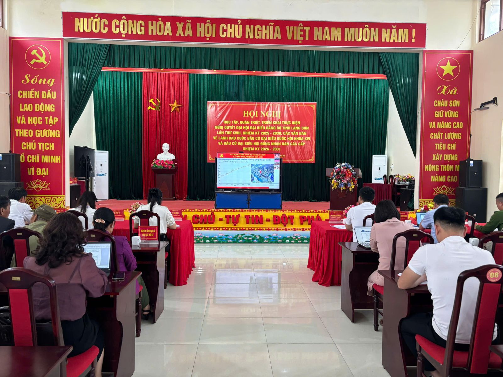 Ngày 31 tháng 10 năm 2025, tại Hội trường UBND xã Châu Sơn, Đảng ủy xã Châu Sơn tổ chức Hội nghị học tập, quán triệt, triển khai thực hiện Nghị quyết Đại hội Đảng bộ tỉnh Lạng Sơn lần thứ XVIII, nhiệm kỳ 2025–2030; các văn bản của Ban Chấp hành Đảng bộ tỉnh về lãnh đạo cuộc bầu cử đại biểu Quốc hội khóa XVI và bầu cử đại biểu Hội đồng nhân dân các cấp, nhiệm kỳ 2026–2031.