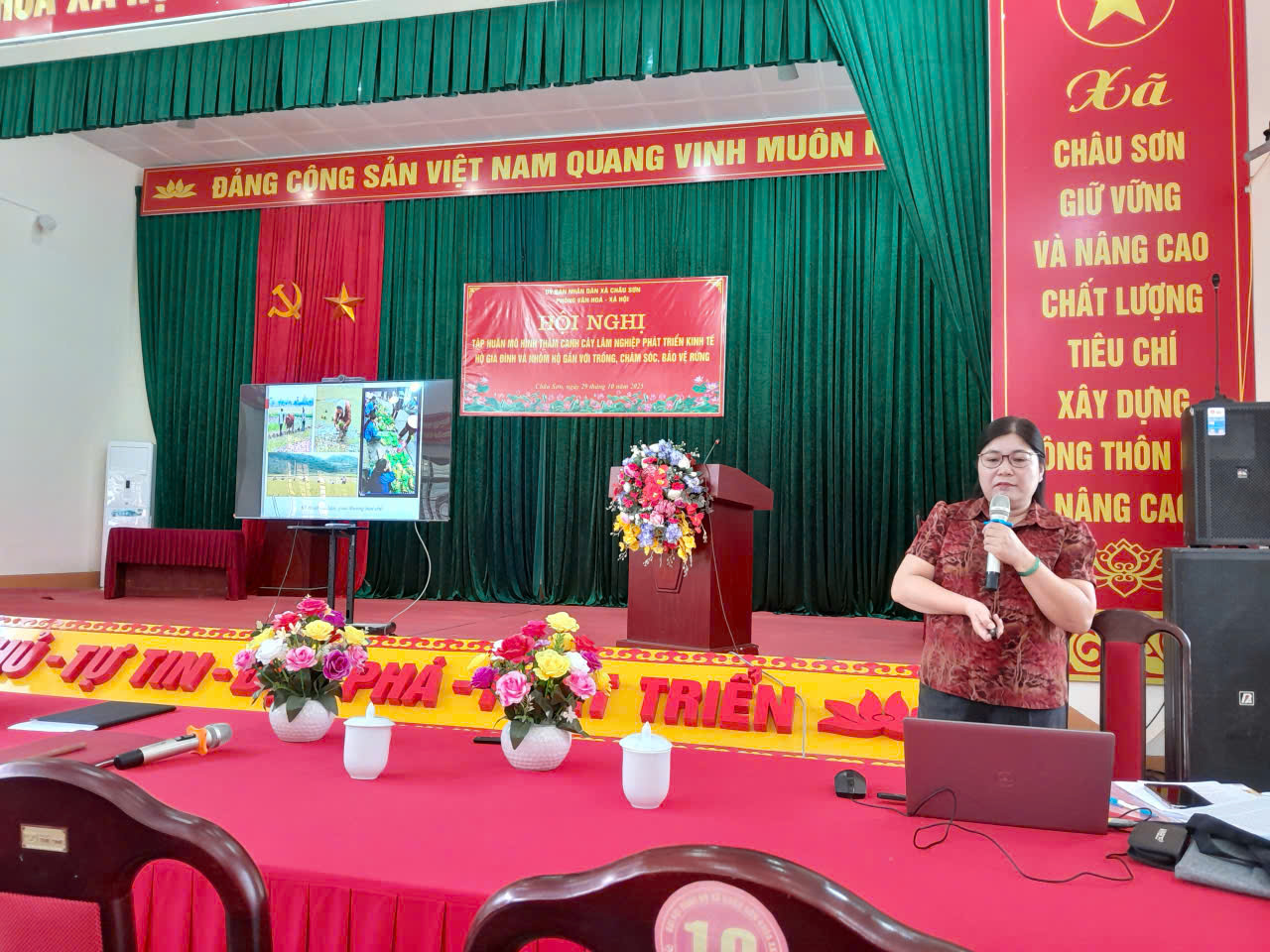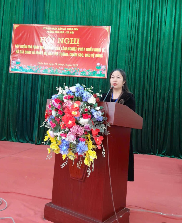 Ngày 29 tháng 10 năm 2025, tại hội trường Nhà văn hoá xã Châu Sơn, Phòng Văn hóa – Xã hội tổ chức Hội nghị tập huấn mô hình trồng cây lâm nghiệp phát triển kinh tế hộ gia đình và nhóm hộ gắn với trồng, chăm sóc, bảo vệ rừng.