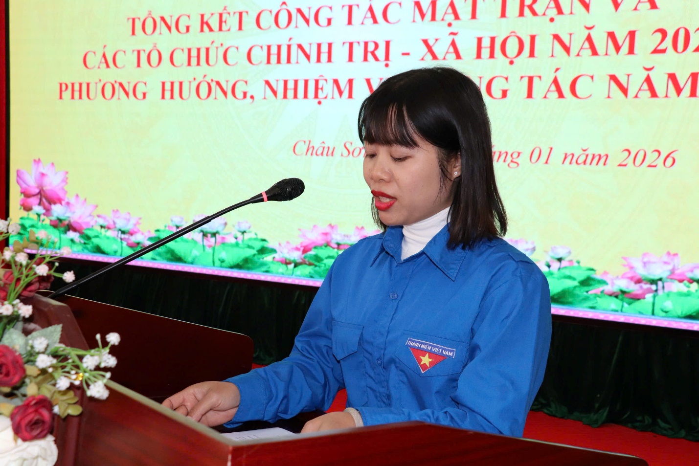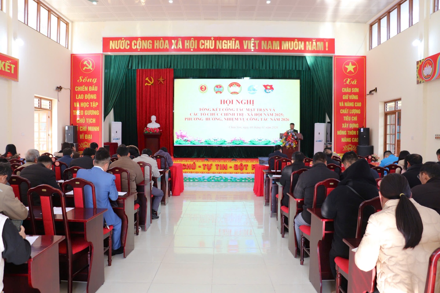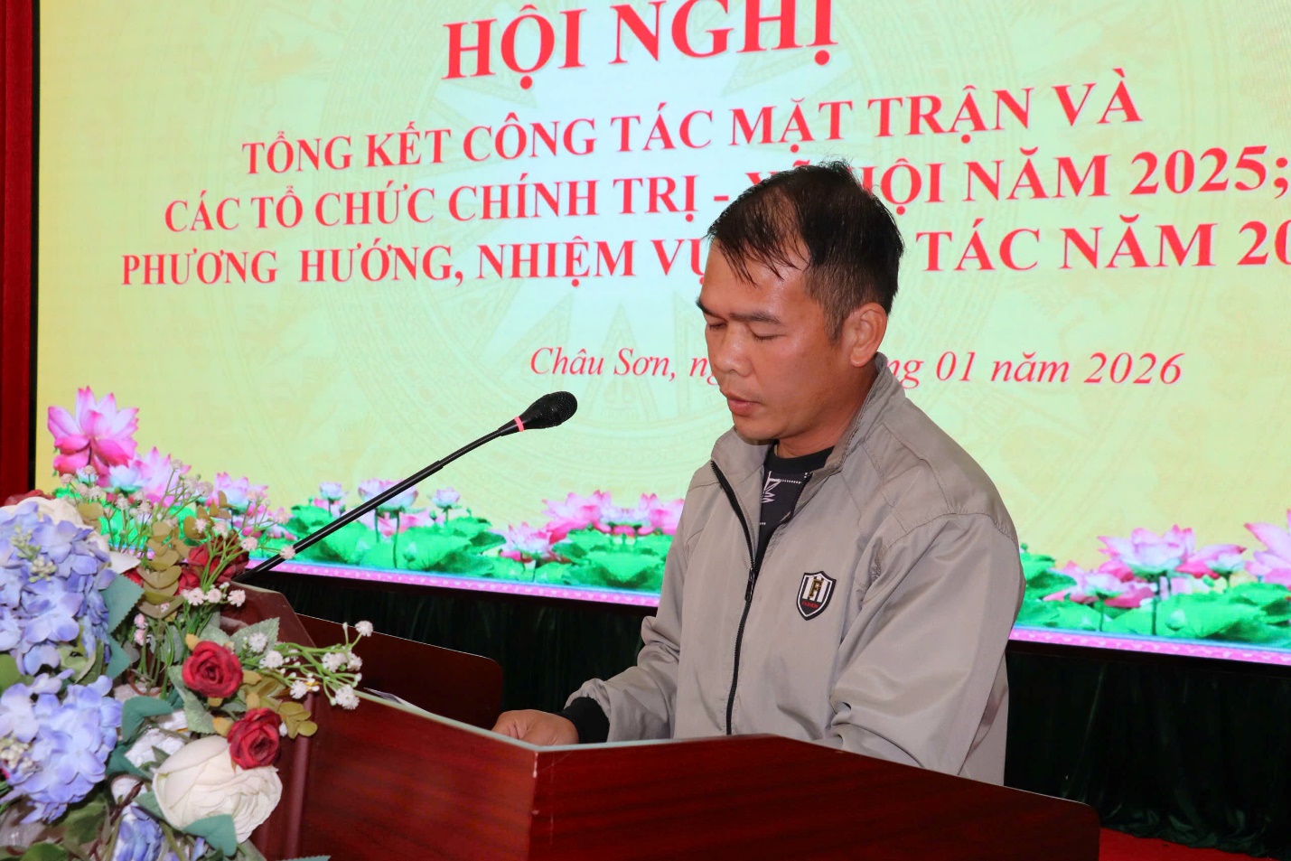 Ngày 08/01/2026, Ủy ban MTTQ xã Châu Sơn tổ chức Hội nghị Tổng kết công tác mặt trận và các tổ chức chính trị - xã hội năm 2025; Phương hướng, nhiệm vụ năm 2026. Dự hội nghị có lãnh đạo Đảng ủy – HĐND – UBND - Ủy ban MTTQ xã và các tổ chức chính trị - xã hội; Chi đoàn, Chi hội trưởng của 24 thôn trên địa bàn xã.