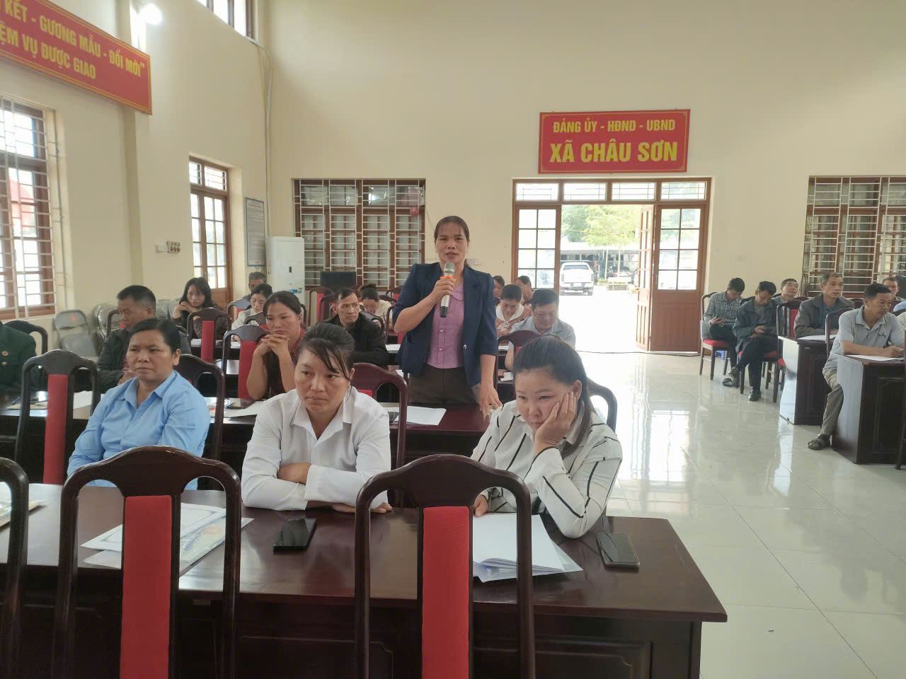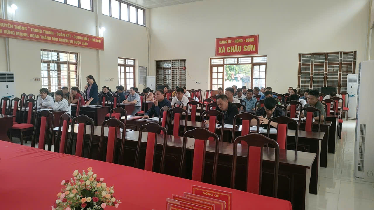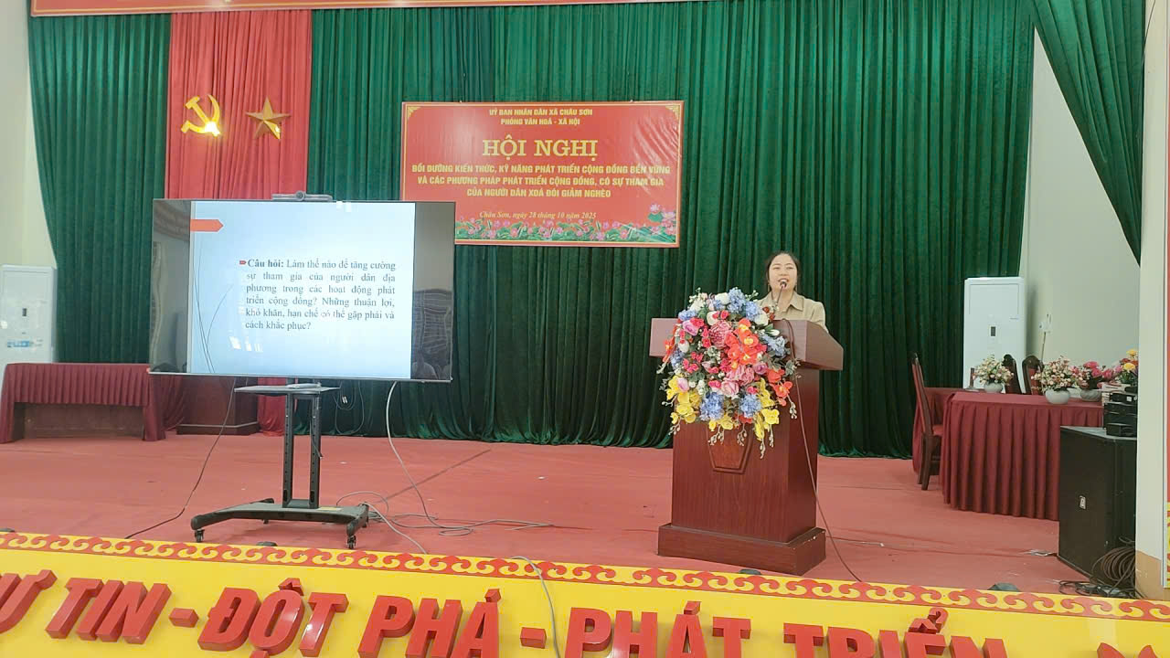 Ngày 28 tháng 10 năm 2025, tại Hội trường Ủy ban nhân dân xã Châu Sơn, Phòng Văn hóa – Xã hội xã Châu Sơn tổ chức Hội nghị bồi dưỡng kiến thức, kỹ năng phát triển cộng đồng bền vững và các phương pháp phát triển cộng đồng, có sự tham gia của người dân trong công tác xóa đói giảm nghèo.