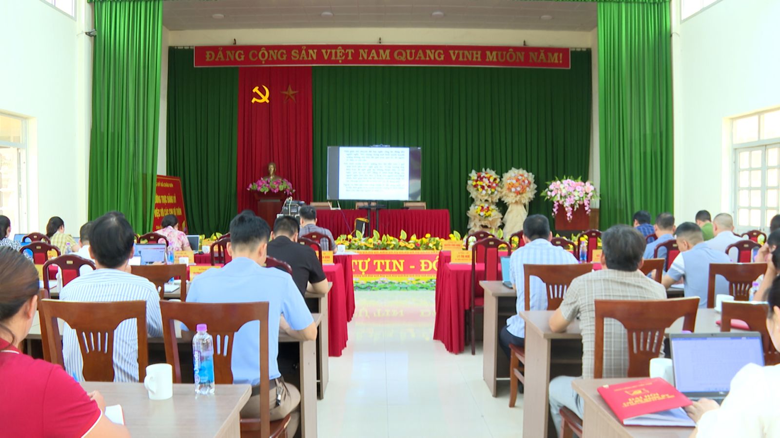 Các đại biểu tham dự hội nghị tại điểm cầu Đảng ủy xã Châu Sơn
